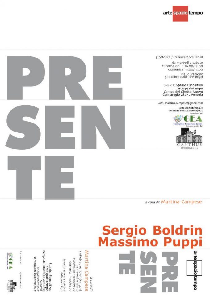 La mostra “Presente” degli artisti veneziani Sergio Boldrin e Massimo Puppi si terrà dal 5 ottobre al 10 novembre 2018…