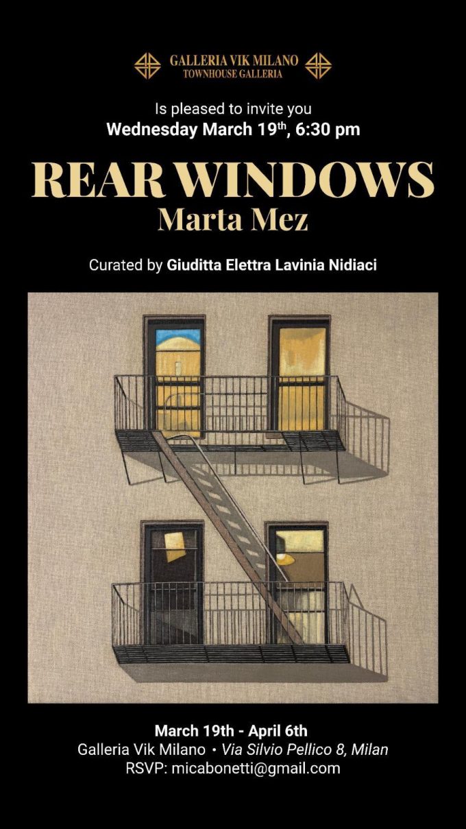 Galleria Vik Milano è lieta di presentare REAR WINDOWS la mostra personale dell'artista MARTA MEZ , a cura di Giuditta…