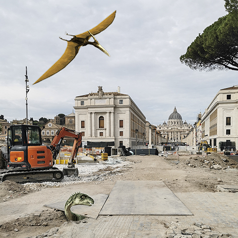 Fotografie creative di Teresa Bianchi. "... Roma è invasa dai dinosauri e la fotografa come in un reportage di guerra…