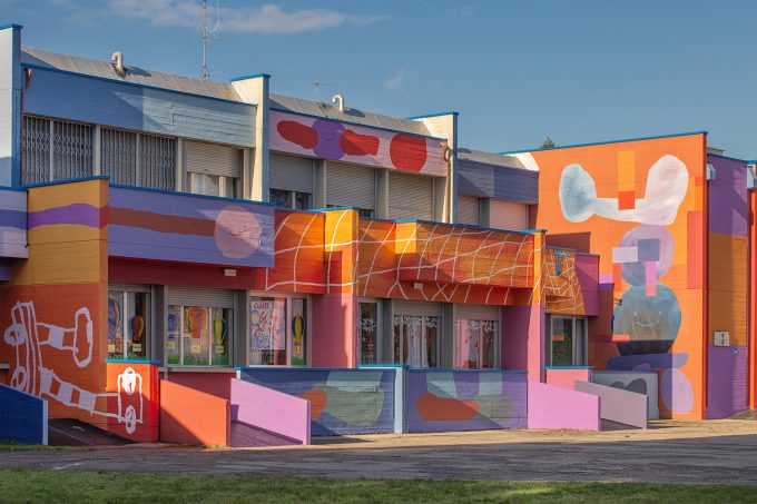 La facciata della scuola Sauro- Papini del Galluzzo a Firenze cambia completamente aspetto grazie all’intervento di arte urbana “Che Festa…
