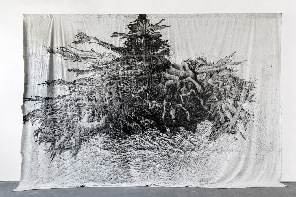 Il rapporto con il film cult non è, ovviamente, letterale né di commento ma descrive la frequentazione di uno stesso territorio poetico. Fabiani, figura di spicco di una generazione di artisti che ha segnato il paesaggio degli anni Novanta, è dotato di una fortissima specificità estetica, completamente avvinta agli strumenti, ai materiali, ai medium che utilizza. Muovendosi sul crinale tra attenzione alla tradizione e interpretazione iconoclasta, ha solitamente prediletto le iconografie della commedia dell’arte assieme a una corte picaresca di personaggi che affollano le sue opere. Con I sette samurai Fabiani si confronta con una dimensione eroica, sia per quanto riguarda i temi sia per le proporzioni di questa serie di lavori in cui torna anche la tecnica che lo ha reso noto agli esordi con I Soffi.