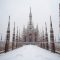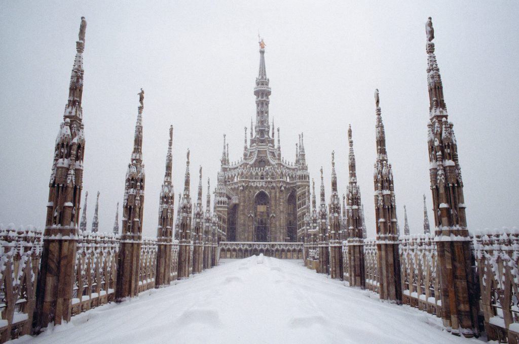 La mostra, che si sviluppa su entrambi gli spazi della galleria, presenta al piano superiore 22 immagini di medie dimensioni che hanno per protagonista il Duomo, monumento iconico del capoluogo lombardo, colto da diverse prospettive e in diversi momenti storici, dal primo lockdown italiano a ritroso fino alla grande nevicata del 1985.