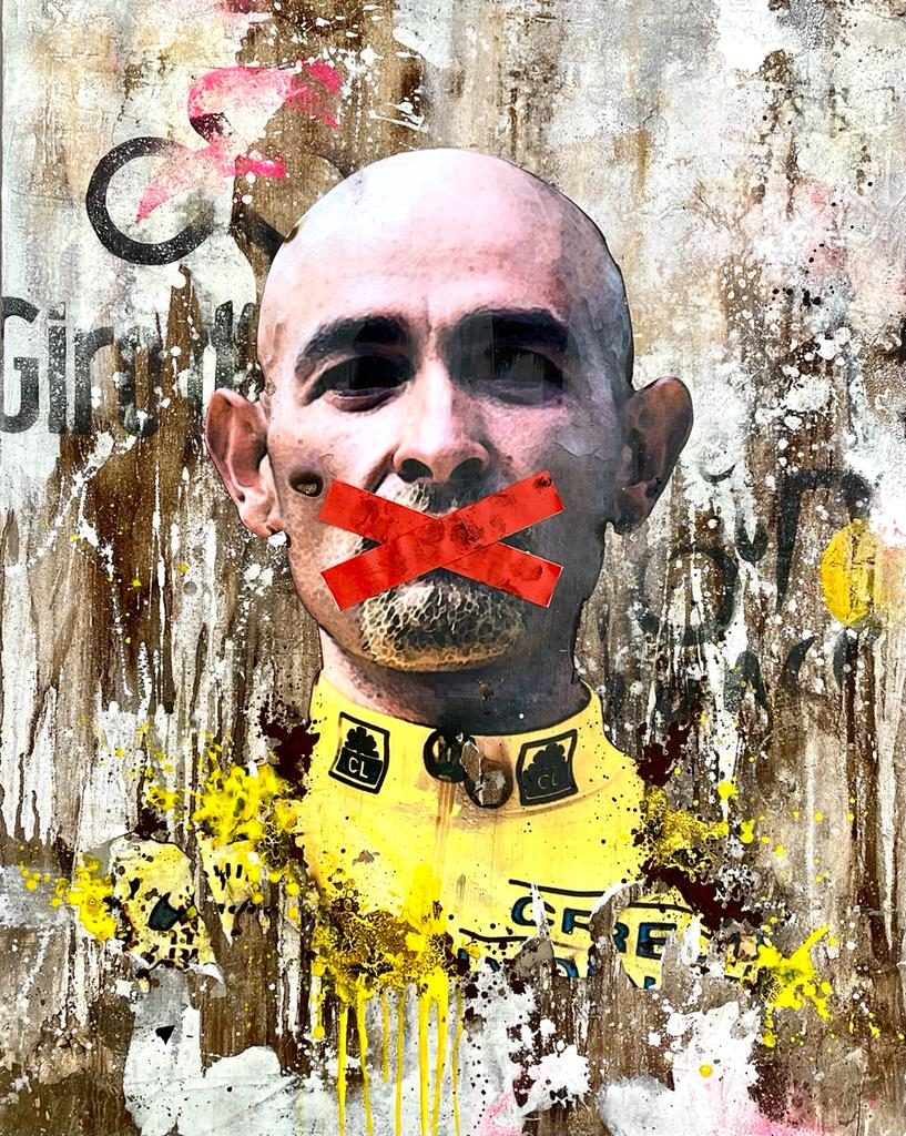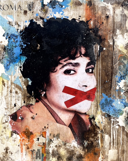 A loro Carlo Inglese, nelle sue tele, dopo aver sapientemente mescolato a manifesti e carte varie dripping, bitume, calce e bruciature, tappa letteralmente la bocca con una croce rossa sulle labbra. Ci piacerebbe che almeno qui, in questo piccolo spazio, si possa rendere loro giustizia anche solo con un ricordo e un sentimento di riconoscenza.