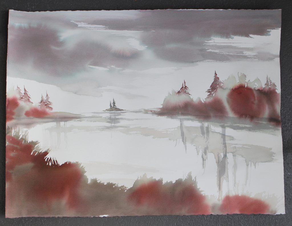 Un’installazione con grandi teli in stile kakemono ci fa immergere nelle betulle dipinte da Magrin perché, con le parole di Steiner, “per vivere il bosco bisogna essere bosco”.