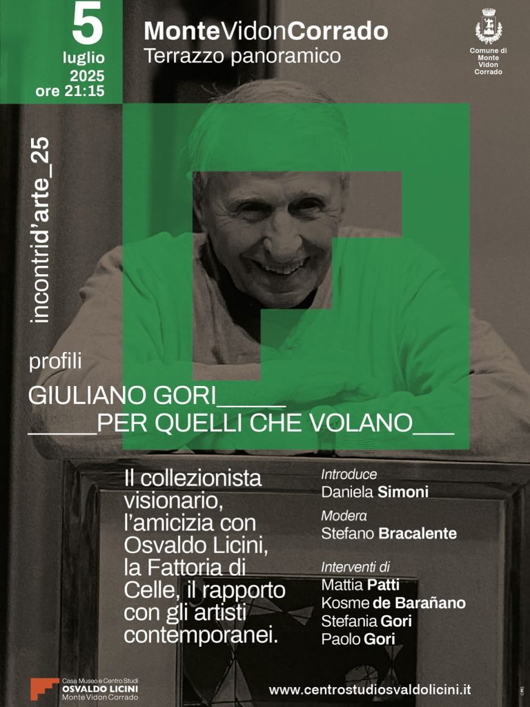 Sabato 5 luglio, dalle 21.15 torna la grande arte sul terrazzo panoramico di Monte Vidon Corrado, con una imperdibile serata dedicata a Giuliano Gori (1930-2024), collezionista colto e visionario. L’evento rientra nella rassegna “Incontri d’Arte” organizzata dal Centro Studi Osvaldo Licini in collaborazione con il Comune di Monte Vidon Corrado.