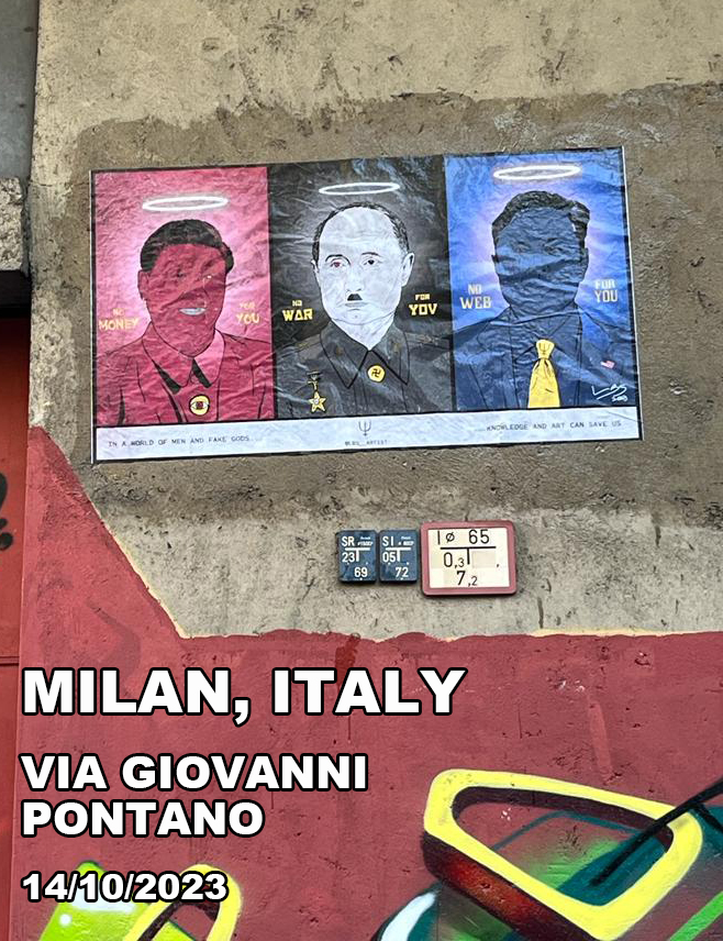 L'artista italiano Bruno Salvatore Latella (LBS) presenta un trittico intitolato "No Money, No War, No Web "nella città di Los Angeles. Si tratta un progetto senza precedenti: per la prima volta al mondo una singola e specifica opera di street art è stata presentata contemporaneamente in più città del globo, inaugurando così l’avvento della prima forma di “Globalized Street Art”.