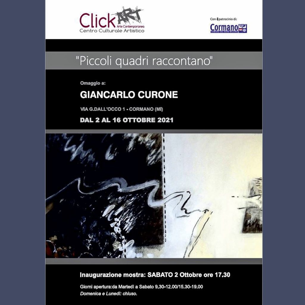 Giancarlo Curone è un artista che ha lasciato una sua inconfondibile impronta nell'arte italiana dal secondo novecento fino ai primi anni del terzo millennio. Una carriera iniziata negli anni '50 con la frequentazione della Accademia di Belle Arti di Brera e che è proseguita poi con importanti esposizioni in territorio lombardo.