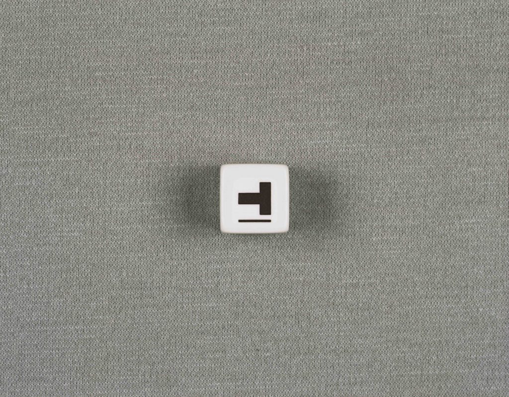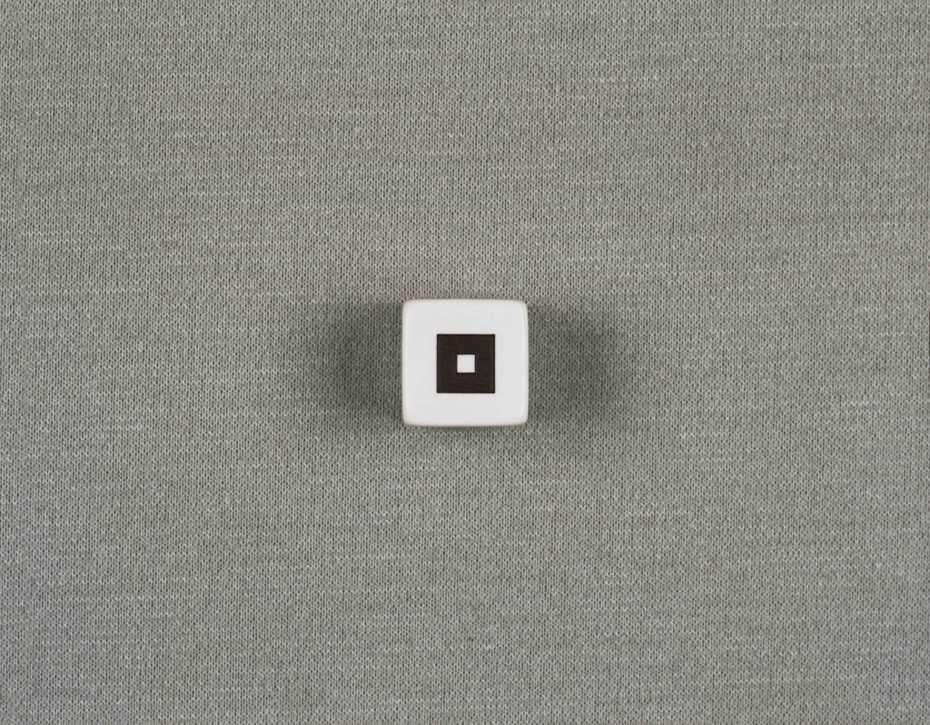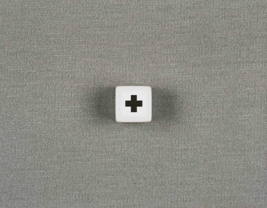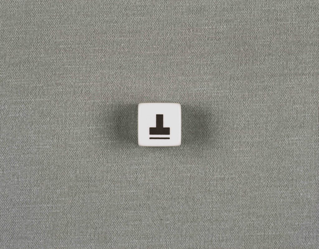 L’esposizione si arricchisce di altre due immagini fotografiche, questa volta di dimensioni maggiori, che raffigurano attimi di gioco, dove il segno del dado e il gesto della mano si relazionano dando luogo ad una stratificazione di significati. Il dado è per l’autore anche l’occasione di ripensare alla sua produzione precedente, legata alla pittura, ma già rivolta al segno grafico e alla necessità di raccontare uno spazio con una superficie.