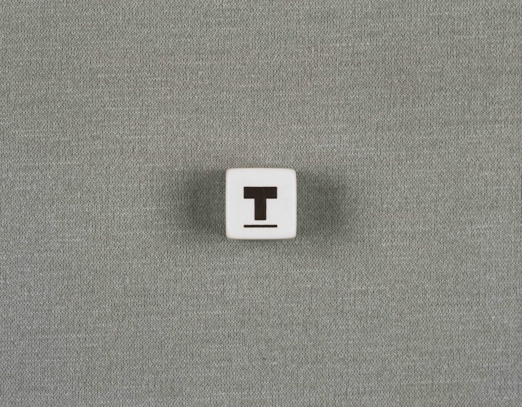 La mostra si apre con il video di un dado a sei facce personalizzate agitato in un bicchiere, sullo sfondo di un tavolo da gioco rivestito di un tessuto grigio. Questo dado sembra indicarci dove l’artista va quando dorme, un viaggio onirico che porta Belotti a riflettere sulla stratificazione del linguaggio, sulla lontananza dal reale e l’accettazione del caso.