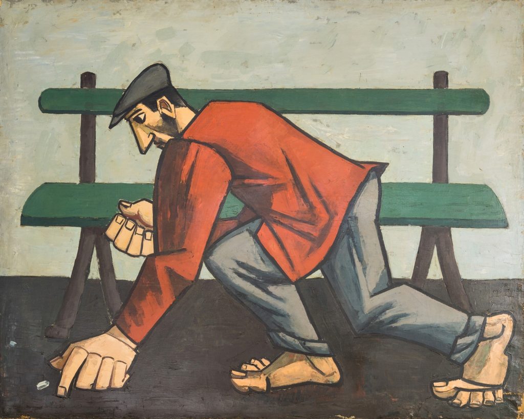 La seconda fase coincide con il dopoguerra qundo, dopo essere stato in vacanza in Versilia ospite del conterraneo Carlo Carrà e dopo aver dipinto "en plein air" con lui, individua una sua singolare sigla espressiva avvalendosi di figure caratterizzate da angoli vivi, linee rette, spigoli acuti, come se le immagini fossero ottenute da uno scultore che al posto dello scalpello usa l'ascia.
