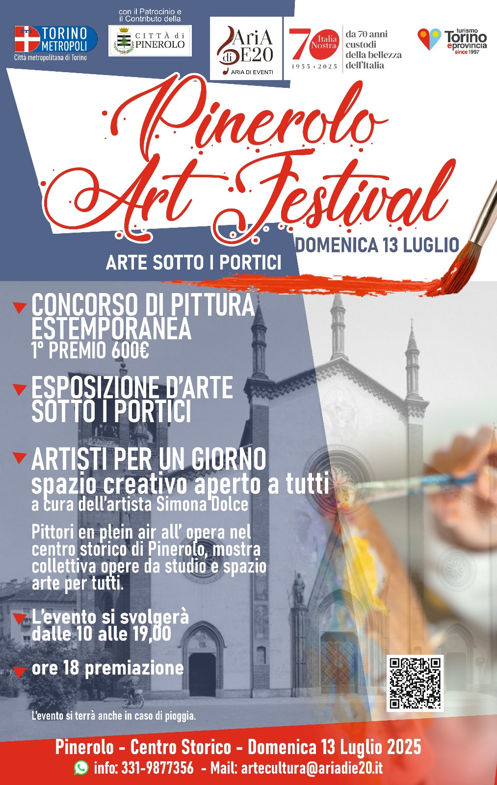 L’Associazione Culturale Artistica AriadiE20, in collaborazione con Italia Nostra Aps- Sezione di Pinerolo "Ettore Serafino", con il patrocinio ed il contributo della Città di Pinerolo e il patrocinio della Città Metropolitana di Torino organizza la prima edizione del Pinerolo Art Festival.