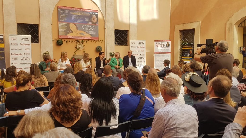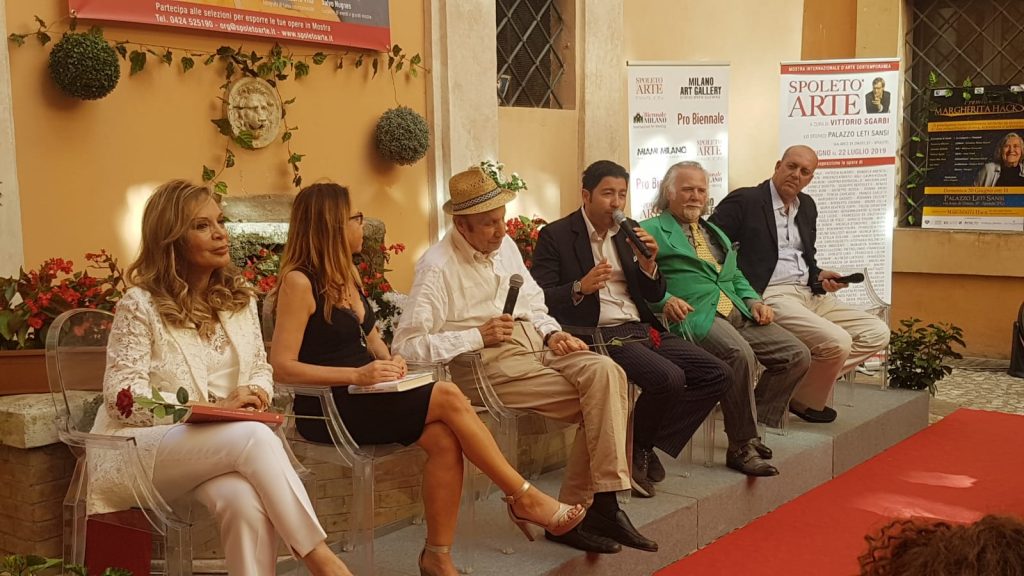 Quella del 2019 resterà un’edizione memorabile negli annali di Spoleto Arte. La mostra internazionale d’arte contemporanea ha aperto i battenti lo scorso sabato 29 giugno a Palazzo Leti Sansi, in via Arco di Druso 37 a Spoleto. Inaugurata alla presenza di due grandi professori, il sociologo Francesco Alberoni e il critico d’arte Vittorio Sgarbi, la rassegna spoletina organizzata dal curatore di mostre e grandi eventi Salvo Nugnes ha visto prendervi parte oltre 120 artisti provenienti dall’Italia e dall’estero con quasi 300 opere. L’evento ha suscitato l’attenzione di numerose personalità illustri, tra cui la stilista Anna Fendi, l’attrice e cantante Serena Autieri, l’assessore alla Cultura Ada Urbani, la scrittrice e giornalista Silvana Giacobini, già direttrice di «Chi» e di «Diva e Donna», la pittrice Antonella Cappuccio Muccino, il presidente del Festival dei Due Mondi Umberto De Augustinis, il direttore dell’Ansa Vincenzo Di Vincenzo, la giornalista RAI Antonietta Di Vizia, l’artista José Dalí, figlio di Salvador Dalí, e Patrick, inviato di Striscia la Notizia. La kermesse, oltre che per l’evento in sé, ha trovato un pubblico sensibile in occasione del discorso di apertura di Francesco Alberoni che, assieme alla scrittrice e psicologa Cristina Cattaneo, ha trattato il tema dell’amore in un contesto così ampio e vario come quello spoletino. Argomenti come l’innamoramento nella nostra quotidianità, l’utilizzo dei social e il loro effetto nella relazione di coppia sono stati solo alcuni dei punti cruciali toccati assieme al parterre di vip e agli artisti che qui rimarranno esposti fino al 22 luglio.