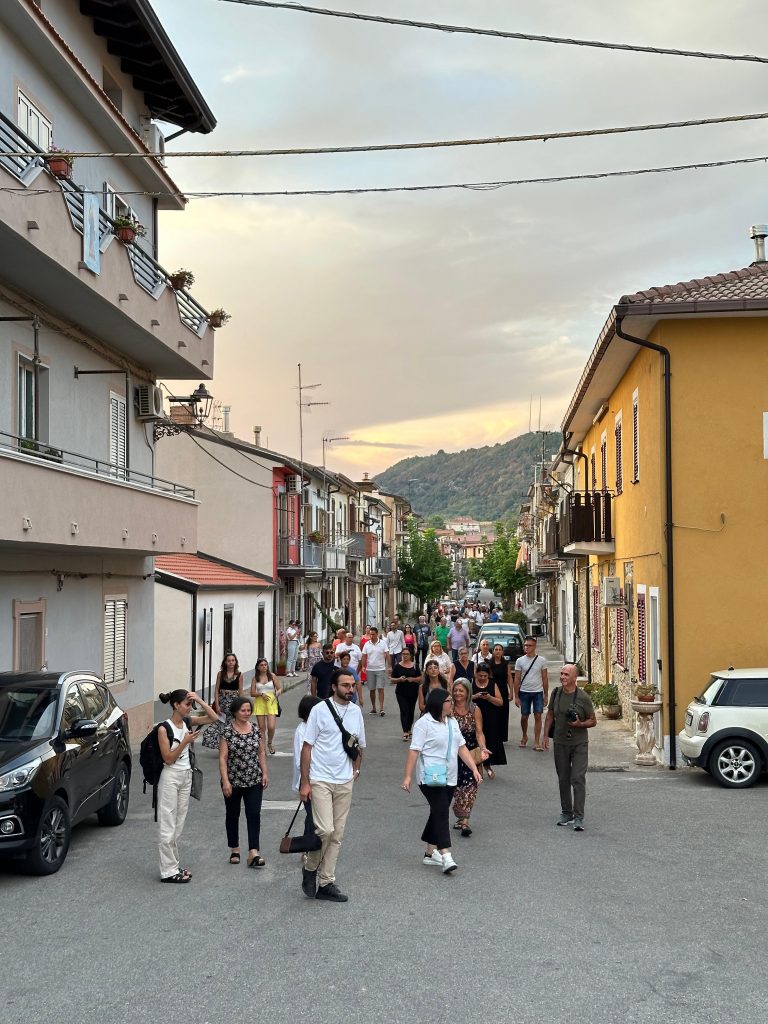 La performance ha preso la forma di un dispositivo relazionale, che ha mirato a costruire un dialogo tra gli abitanti della comunità, sia coloro che sono rimasti che quelli che vivono altrove. Sono state raccolte lettere da chi è fuori e da chi è dentro la comunità, lette poi da alcuni membri davanti a tutti, creando un ponte emotivo e culturale tra diverse generazioni e luoghi.