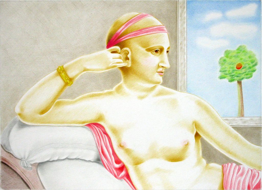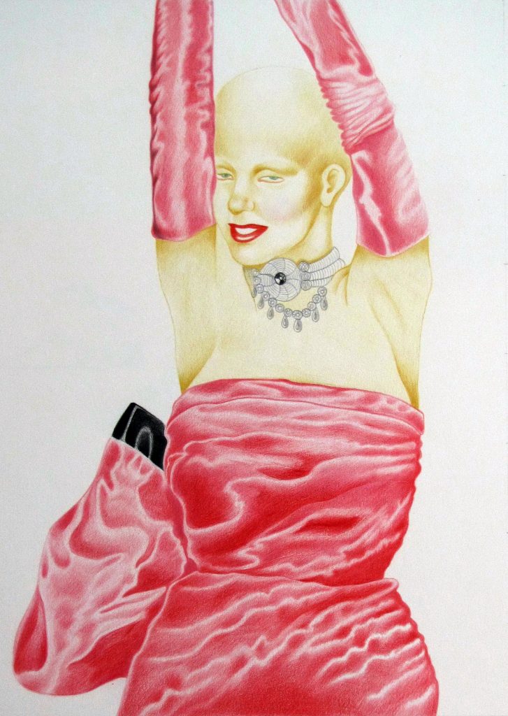 In qualunque epoca e in qualunque condizione sociale la donna ha «inseguito» la bellezza attraverso l’artificio del trucco, del belletto, dell’abito, dell’accessorio e perché no delle parrucche. Ma queste della Michieletto sono donne calve, sono donne senza quell’importante «accessorio» del fascino femminile che contraddistingue prevalentemente ma non necessariamente la condizione della giovinezza e della bellezza.