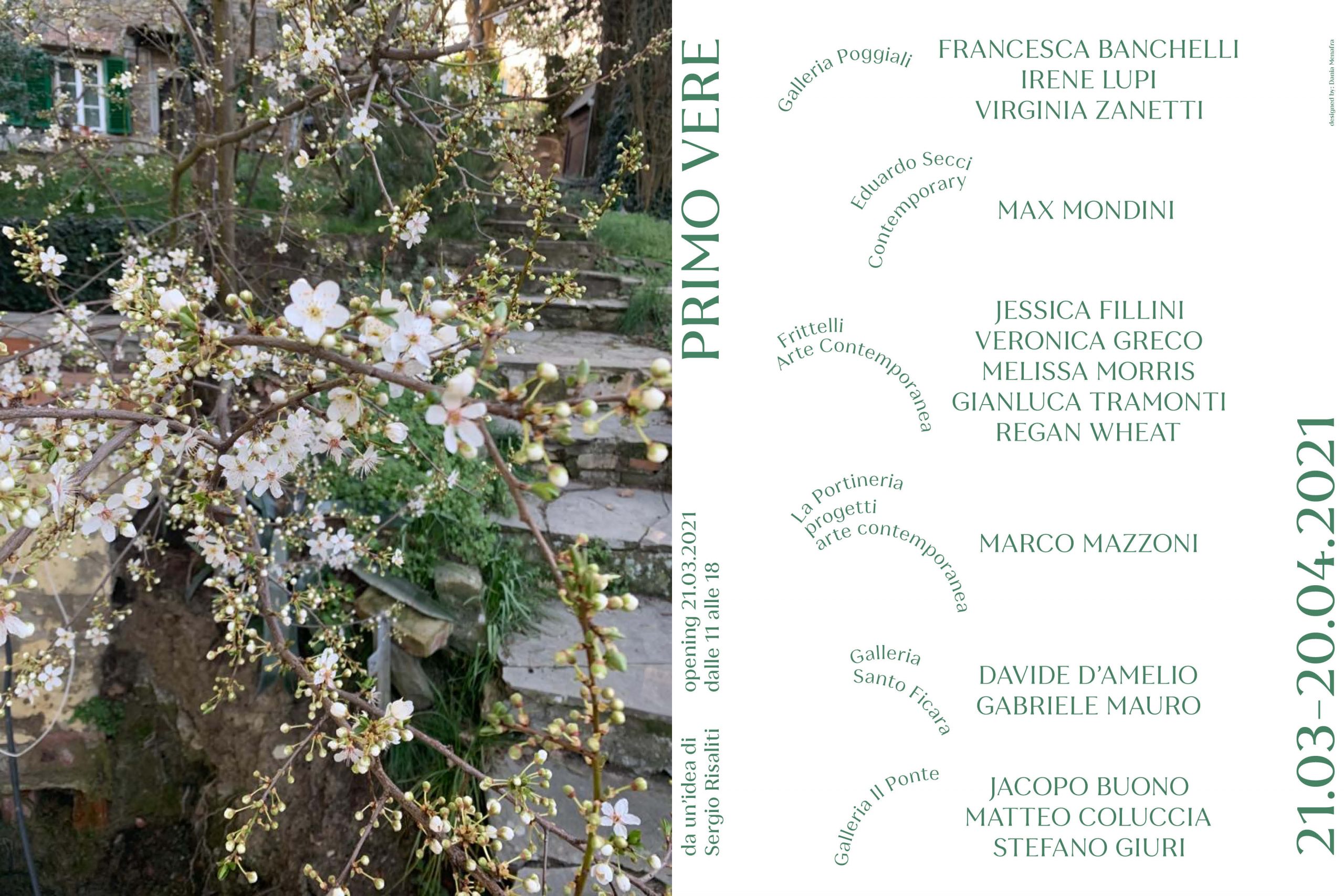 Su idea del direttore artistico del Museo Novecento di Firenze, Sergio Risaliti, sei gallerie d’arte di Firenze, da domenica 21 marzo danno vita al progetto "Primo vere" con apertura al pubblico dalle 11 alle 18. Salvo restrizioni e limiti di apertura e visita dovuti all’emergenza sanitaria, il progetto si protrarrà fino a martedì 20 aprile 2021. Le gallerie coinvolte - Frittelli, Il Ponte, La Portineria, Poggiali, Santo Ficara e Secci -, sono tutte di Firenze.