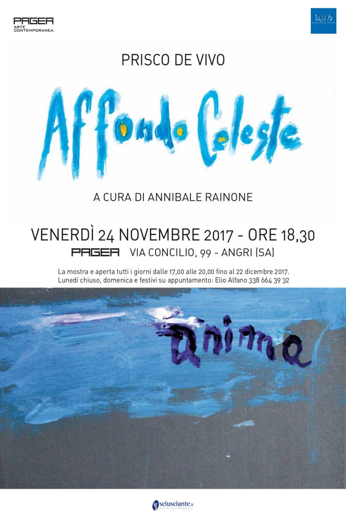 Dal 24 novembre 2017 al 22 dicembre 2017 Pagea - Arte Contemporanea ospiterà le opere (pitture, sculture, installazioni) di Prisco De Vivo sul tema del sacro. Pagea Arte Contemporanea ricongiunge in questi giorni presso i suoi spazi le fila di un discorso che ha visto impegnato De Vivo per una decina d’anni sul difficile terreno di incontro/scontro tra Sacro e Contemporaneo: difficile sintonia perché l’arte contemporanea e l’arte sacra faticano ad incrociare i propri statuti o, più semplicemente, le proprie specifiche procedure ma, anche, complessa sfida da raccogliere.