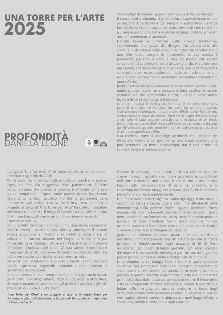 “Profondità” è un progetto di Daniela Leone; Attraverso installazioni scultoree e pittoriche l’artista mette in mostra un percorso