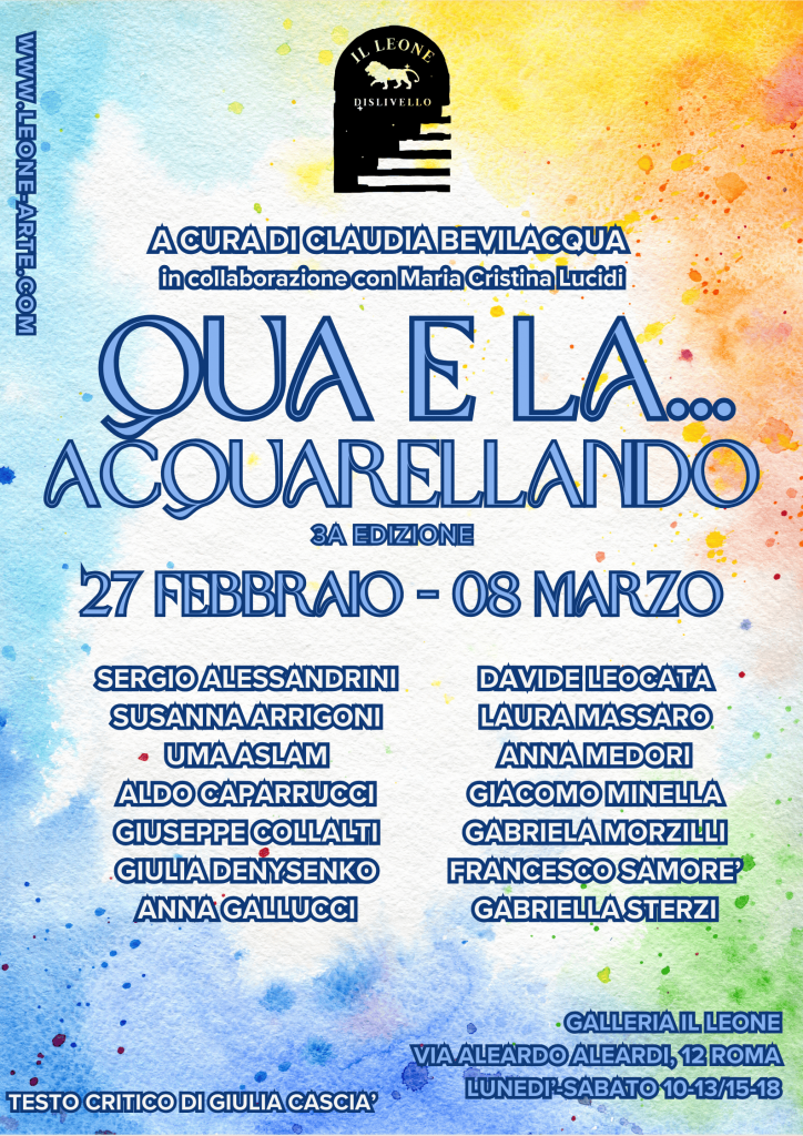 La mostra collettiva “Qua e La…Acquerellando” offre l’opportunità agli artisti partecipanti di presentare al pubblico, attraverso le opere esposte, la propria visione poetica legata ad una ricerca fortemente personale ed intima sull’acquerello, che può assumere molteplici forme e significati.
