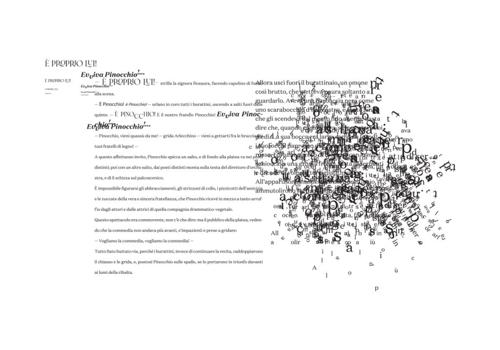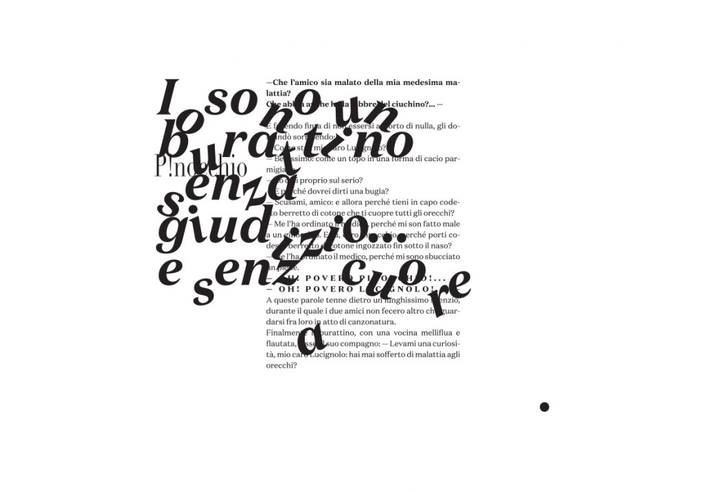 Un’esplosione di parole e simboli per immergersi nel romanzo che ha segnato la fantasia di ogni lettore; il secondo testo più pubblicato al mondo dopo la Bibbia, oltre a quello tradotto in assoluto in più lingue. Questa è “Racconto grafico. Le avventure di Pinocchio”, l’installazione del designer Stefano Rovai che sarà inaugurata domenica 3 aprile 2022 al Museo Marino Marini di Firenze (piazza San Pancrazio). Ogni frase del testo di Collodi si trasforma in un’avventura tipografica, in un’illustrazione parlante che parte dalle suggestioni della poesia futurista per decollare in un divertissement tra grafica e linguistica, a partire dal volume “Pinocchio. Racconto grafico”, firmato dallo stesso Rovai (edito da Incipit per Edizioni della Normale di Pisa e Istituto Nazionale di Studi sul Rinascimento, 2022). Durante il vernissage, alle ore 17.00, insieme all’autore e alla presidente del Museo Patrizia Asproni, saranno presenti il direttore dell’Istituto Nazionale di Studi sul Rinascimento e di Incipit Michele Ciliberto e il designer e illustratore Andrea Rauch. La mostra, allestita nella cripta dello spazio espositivo, sarà visitabile fino al 23 maggio 2022.