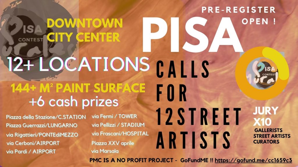 Ci sono luoghi a Pisa che meritano più poesia, mentre un numero sempre crescente (per nostra gioia!) di muralisti, street artist e creativi non hanno contesti in cui emergere e fare conoscere il proprio talento. Per questo abbiamo organizzato il nostro Contest, accompagnato da tantissimi eventi collaterali per un totale di 400+ metri quadri di opere visive che daranno un tocco fantastico ai luoghi d'aggregazione e centri sociali fondamentali di Pisa.