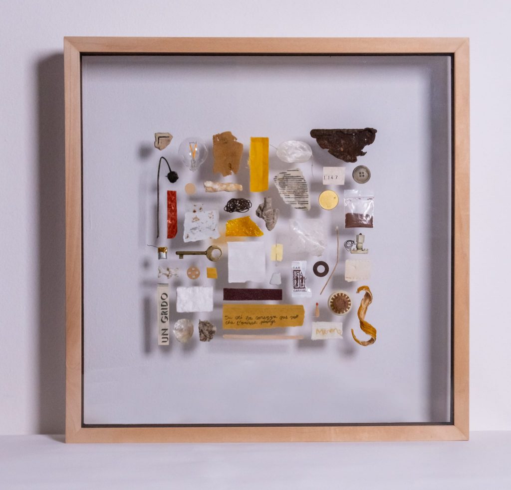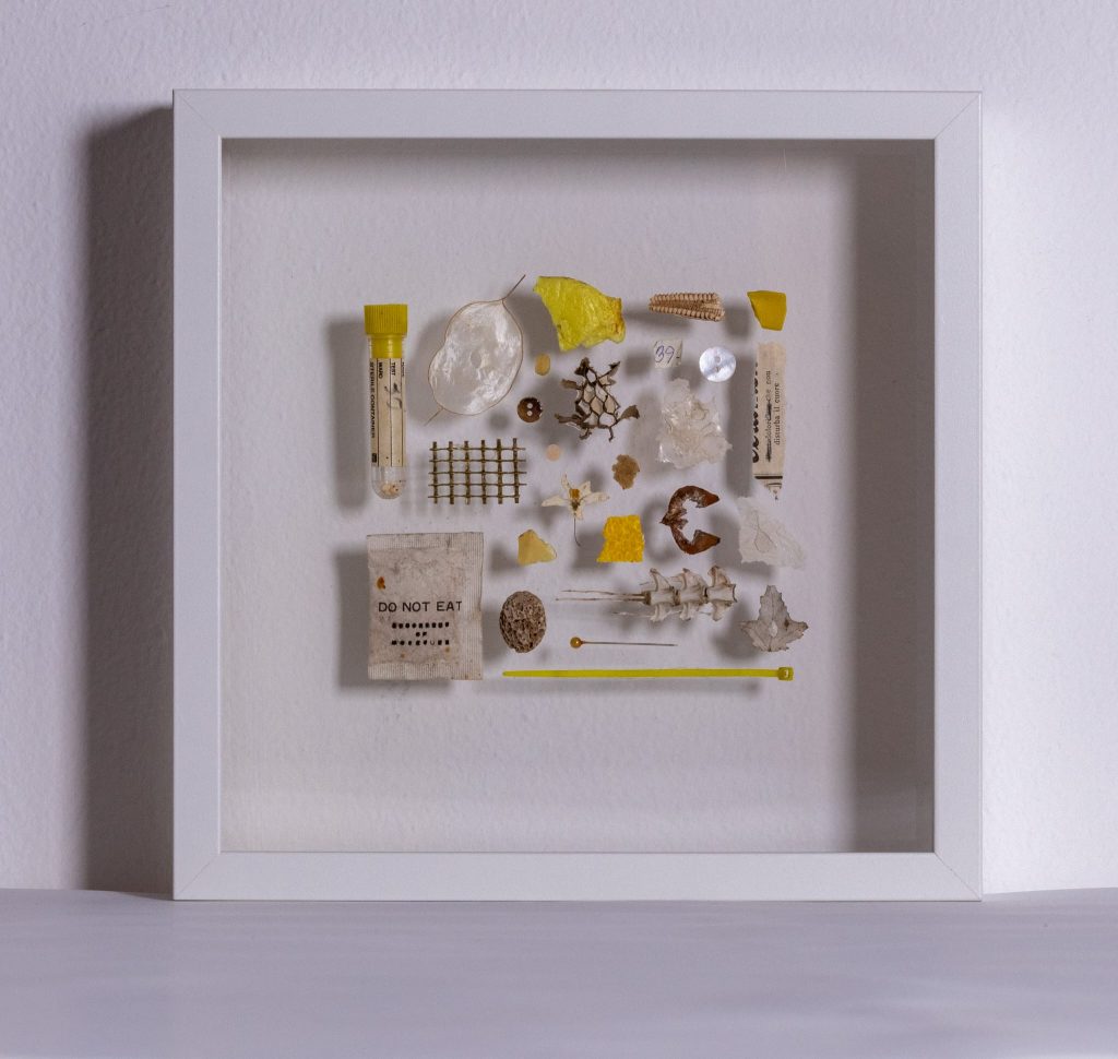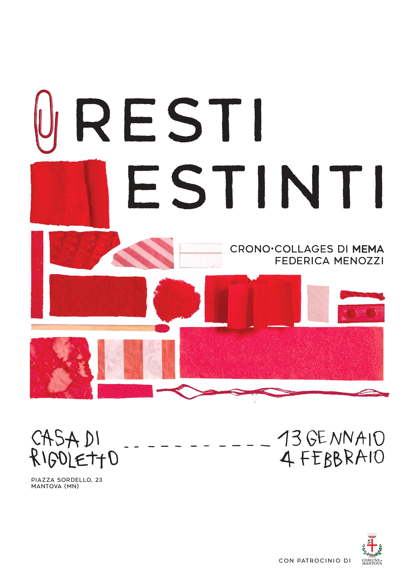 “Resti Estinti” è un accostamento ossimorico scelto per descrivere a parole tutto ciò che un giorno fu ed ora manca della sua funzione. Composizioni di frammenti, sospese nella trasparenza del plexiglas restano bloccate in uno spazio senza tempo. Racconti di un passato, del persistere di un’emozione che non sbiadisce nel colore del suo trascorso. Dall’assemblage di materiali ricomposti in ordinate geometrie si evince la poetica di MEMA, una giovane artista mantovana che trasforma gli “scarti” in opere d’arte. Lo spazio abitato, dalle città alle battigie, dai fiumi ai cassetti di casa, diventa un negozio a cielo aperto di oggetti gratuiti che chiedono solo di essere recuperati. Passeggiare a ritroso - chinarsi ed osservare - raccogliere - posizionare - pensare: azioni semplici descrivono la ricerca continua e infinita dell’artista nata dalla curiosità di ri-trovare il bello in ciò che viene considerato rifiuto.