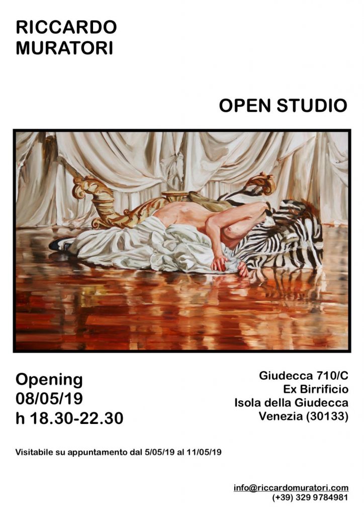Fino all’11 maggio, Riccardo Muratori apre le porte dello studio nei giorni dell’opening della 58th Biennale d’Arti Visive di Venezia. Lo studio è ospitato nel contesto dell’Ex Birrificio dell’Isola della Giudecca, prossimo alle principali gallerie dell’isola veneziana, studi d’artista e alcuni padiglioni della Biennale. Un momento per entrare in dialogo con l’artista nei luoghi più intimi e sorgivi del suo lavoro. In occasione dell’open studio, l’artista porta in mostra gli ultimi anni della produzione pittorica, dal 2014 al 2018, con particolare attenzione ai lavori a olio di dimensioni medio grandi. La ricerca di Riccardo Muratori si concentra sulla relazione tra "immagine" e realtà, e sul processo di virtualizzazione prodotto dai nuovi media e tecnologie che operano nella fase attuale del capitalismo avanzato. Opening: 8 maggio dalle ore 18.30 - 22.30, fino all’11 maggio lo studio è visitabile su appuntamento scrivendo a info@riccardomuratori.com