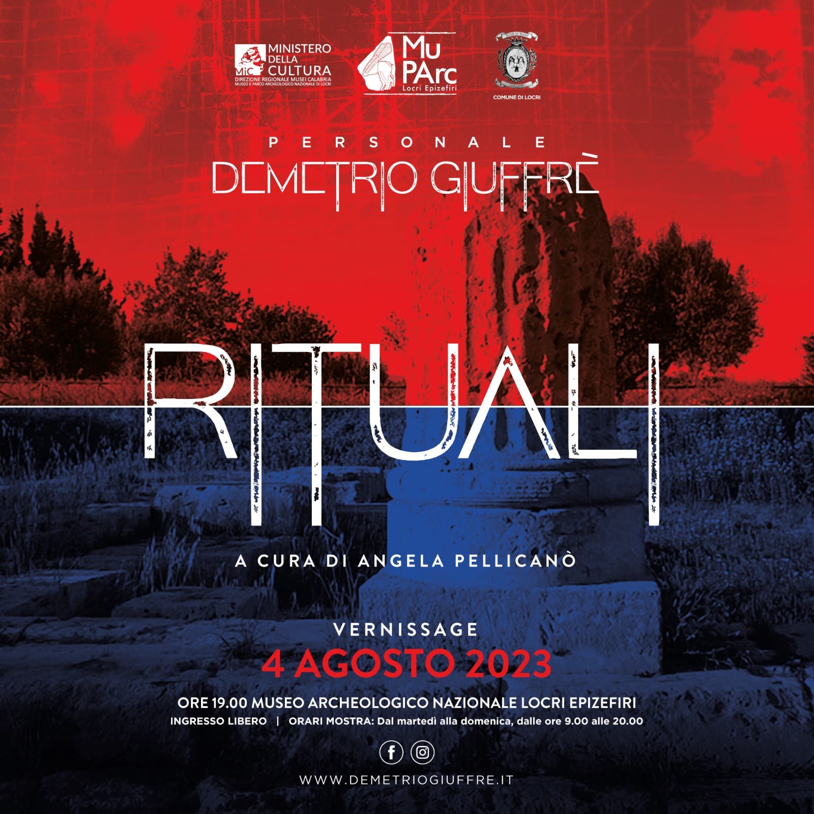 Sarà inaugurata il 4 agosto alle ore 19.00 la mostra di arte contemporanea “Rituali”, personale dell’artista reggino Demetrio Giuffrè a cura di Angela Pellicanò, allestita tra il Museo archeologico e l’area del Tempio di Marasà. L’esposizione è promossa dalla Direzione del Museo e Parco archeologico nazionale di Locri Epizefiri con il patrocinio del Comune di Locri. Il progetto espositivo si snoda su due differenti percorsi. Il primo, all’interno del Museo dal titolo PINAKES, parte da una riflessione sui più celebri reperti di Locri Epizefiri, reinterpretati con il linguaggio proprio dell’artista con lo scopo di indurre lo spettatore a compiere un’esperienza percettiva tra antico e contemporaneo per valutarne persistenze e variazioni.
