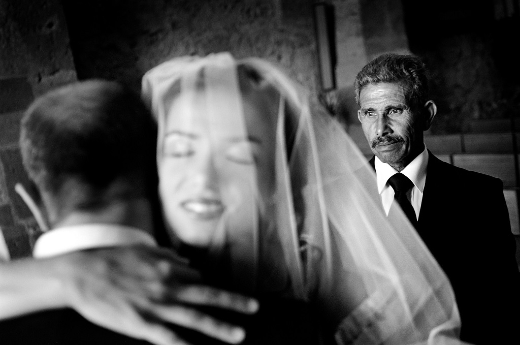 La selezione fotografica di Francesco Cito è invece parte del più ampio progetto “Matrimoni Napoletani” (o “Neapolitan Wedding”), vincitore del prestigioso World Press Photo nel 1995 (categoria “Day in the life”, 3° premio). Anche in questo caso, non si rinviene traccia della staticità e della monotona ripetitività della classica fotografia matrimonialista “di mestiere”, spesso assoggettata per necessità alle specifiche richieste degli sposi; si delinea piuttosto una cifra espressiva fortemente autoriale e slegata dai dettami della fotografia di genere convenzionale e stereotipata.