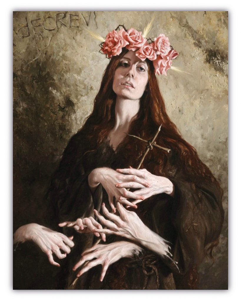 “La rosa nella simbologia cristiana è per eccellenza il fiore della Madonna, la “rosa senza spine”, come quelle che si diceva crescessero nel Paradiso Terrestre, perché nata senza peccato originale – spiega Marco Violi, curatore della mostra. – I colori che si svelano nelle innumerevoli varietà, al progressivo sbocciare dei petali, ricordano i Misteri della Redenzione: si passa dal bianco che richiama l’Immacolata e l’infanzia di Gesù, alle striature rosse che ricordano la Passione di Cristo, al giallo eburneo della luce della Risurrezione. La rosa canina a cinque petali fa riferimento poi alle cinque ferite di Gesù in croce. A questo fiore sono legate anche figure mistiche maschili quali San Domenico, Domenico Savio e particolarmente San Francesco, con quel roseto senza spine che, nato improvvisamente in una notte di gennaio, quando il santo, per liberarsi dai pensieri impuri, non esitò a gettarsi su di un rovo, si tramutò all’istante in un magnifico rosaio, mentre dalle ferite di Francesco nacquero rose”.
