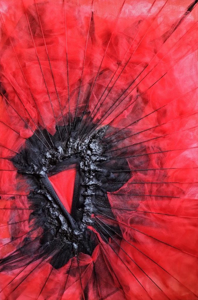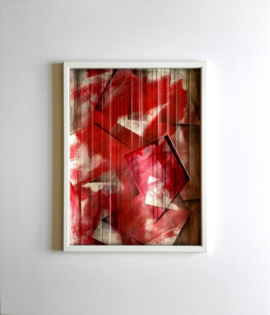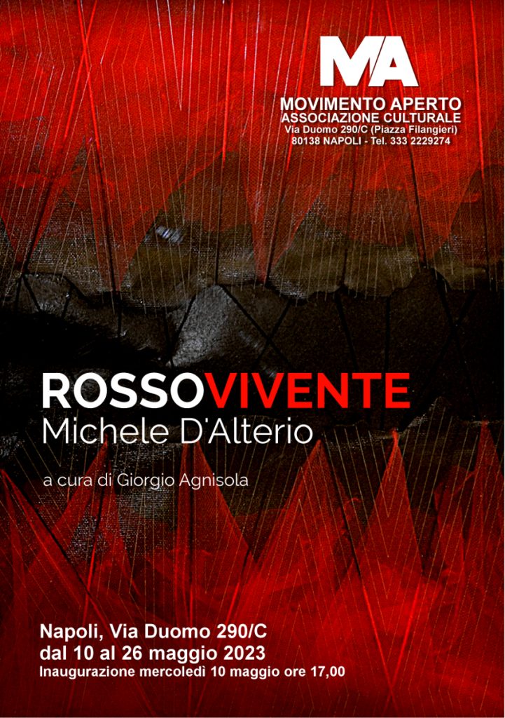 Saranno esposte 13 opere recenti, di varie dimensioni, realizzate con tecnica mista, assemblando materiali di varia natura, tutte caratterizzate dal colore rosso.I rossi in particolare aprono ad un senso di interiorità passionale, suggeriscono varchi e ferite, ma anche sottese esplorazioni di senso.
