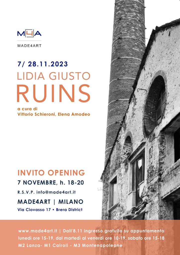 La rovina, come residuo di qualcosa che è sottoposto a incuria, ci rammenta la caducità del reale e diventa il simbolo che ci chiama a un incondizionato e vigile principio di responsabilità. Con la selezione di opere in mostra presso lo spazio d’arte milanese, Lidia Giusto guida l’osservatore in un’atmosfera sospesa e immota, dove luoghi in cui l’uomo ha vissuto, ora in disfacimento, raccontano di un passato recente, ma inequivocabilmente distante.
