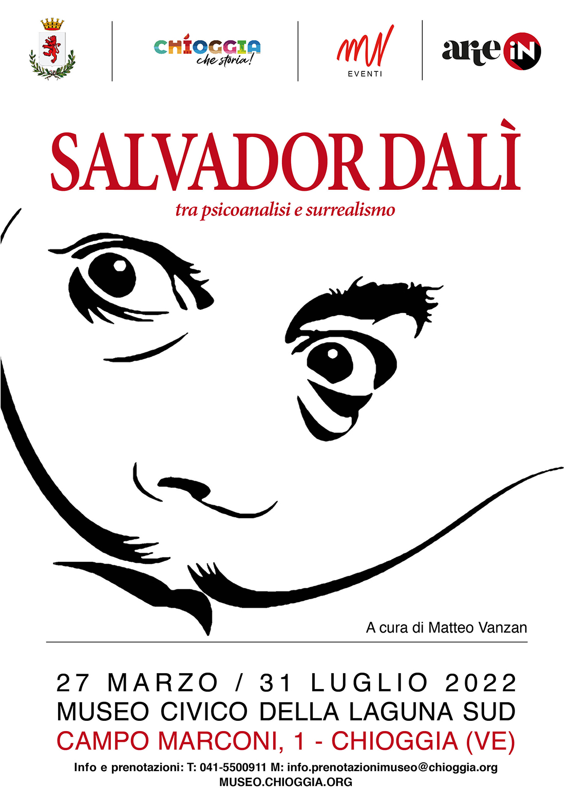 L’Assessorato alla Cultura del Comune di Chioggia (Ve), in collaborazione con l'agenzia MV Eventi di Vicenza, presenta la mostra “Salvador Dalì: tra psicoanalisi e Surrealismo”, terzo appuntamento della programmazione museale dopo i successi registrati con le esposizioni di Andy Warhol e Banksy, che si terrà presso il Museo Civico della Laguna Sud dal 27 marzo al 31 luglio 2022. Oltre 60 opere dell'artista catalano che racconteranno la vita e la psiche del genio surrealista in un excursus storico ed artistico che vuole coniugare l'esperienza artistica con gli influssi determinanti della psicoanalisi di Sigmund Freud. La mostra, curata da Matteo Vanzan, presenterà opere di scultura, incisioni con interventi pittorici, acqueforti, acquetinte e incisioni provenienti da collezioni private di tutta Italia.