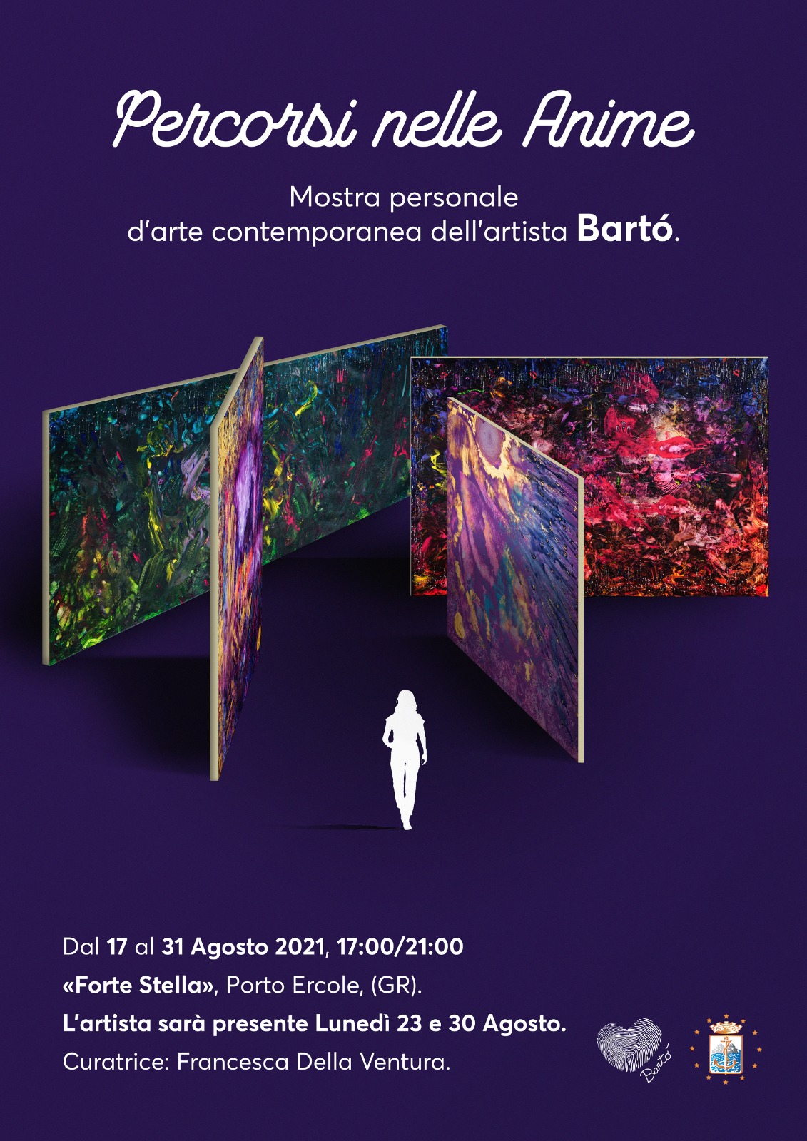 La mostra “Sara Bartolini. Percorsi nelle anime.”, curata dalla ricercatrice e critica d’arte Francesca Della Ventura, si terrá dal 17 al 31 agosto 2021 presso il complesso monumentale toscano di Porto Ercolano, il Forte Stella. L’artista ha desiderato particolarmente tenere la sua prima personale in questo luogo che da secoli desta lo stupore del visitatore. Simbolicamente il Forte Stella rappresenta nel suo percorso artistico e personale un punto di arrivo, ma anche di partenza. Bartó invita chi avrá modo di visitare la sua mostra ad intraprendere lo stesso cammino introspettivo che, per mezzo delle opere esposte, puó portare ad una riflessione e ad una messa in discussione sul proprio posto nel mondo e sul senso della dualitá corpo/anima, oltre che ad una maggiore consapevolezza di chi si é. Se è vero che, come affermava Platone, l’anima puó essere veramente libera solo svincolandosi dalla prigionia del corpo, altrettanto è vero che la pittura rompe i legami con il mondo materiale e consente di percepire entrambe, l’anima e la libertá.