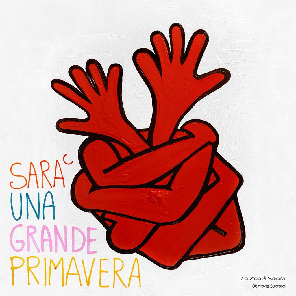 Si tratta dell’opera “Sarà una Grande Primavera” de Lo Zoo di Simona; un’azione artistica che ha l’intento di stimolare la città, che Simona ama molto e che vorrebbe reagisse, in modi diversi, a questo periodo, uscendo dal torpore di cui la pandemia è certamente causa ma anche (spesso) alibi.