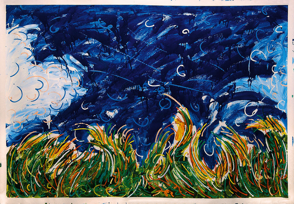 Se negli anni Settanta l’interesse preponderante di Schifano sembra spostarsi dalla natura alla cultura – la cultura artistica in primo luogo, con il suo bagaglio di omaggi e citazioni – ecco che alla fine del decennio e durante tutti gli anni Ottanta la dimensione organica ridiventa protagonista di importanti cicli di lavori, come “Al mare” e “Orto botanico”, e di mostre come Naturale sconosciuto, presso le Prigioni Vecchie di Venezia nel 1984, e Indicazioni, presso il Palazzo Guasco di Alessandria. Si tratta questa volta di una natura che tende a farsi assoluta, di una condizione non referenziale che Alain Cueff definisce “natura della natura”: qualcosa di simile all’evocazione di un principio generativo, di una vitalità primordiale che trascende qualsiasi forma e materia. È lo stesso artista a suggerire questa ipotesi interpretativa chiosando il titolo della sua mostra dell’84 a Venezia: “’Naturale sconosciuto’ perché nessun segno, nessuno di quei segni