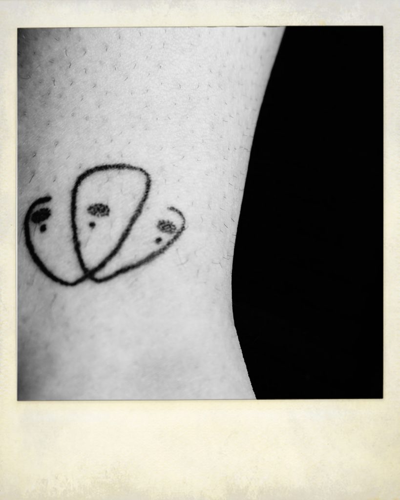 Matilde, attraverso gli scatti della sua polaroid, afferra i segni impressi sulle pareti delle sale abbandonate e sui corpi tatuati di amici e astanti. Franco li reinterpreta sulla carta e chiede ai visitatori di collaborare lasciando su un foglio affisso, un proprio segno identificativo.