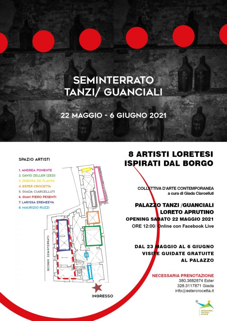 Otto artisti, tutti legati in qualche modo al paese di Loreto Aprutino,per nascita o residenza hanno allestito una collettiva d'arte contemporanea all'interno del seminterrato del palazzo.
