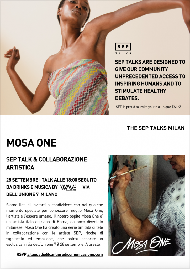 La condivisione di visione e intenti che porta alla luce sette nuove tele. Qui l’arte di Mosa One si unisce con quella delle ricamatrici SEP per restituire allo spettatore la testimonianza visiva di come oriente e occidente possono incontrarsi e soprattutto integrarsi.
