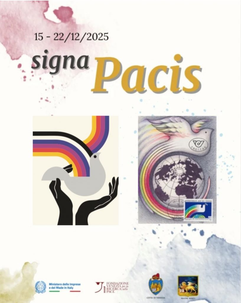 Signa Pacis è una mostra d’arte filatelica e digitale dedicata al mezzo simbolico del francobollo come messaggero di pace, realizzata dalla Fondazione Venezia per la Ricerca