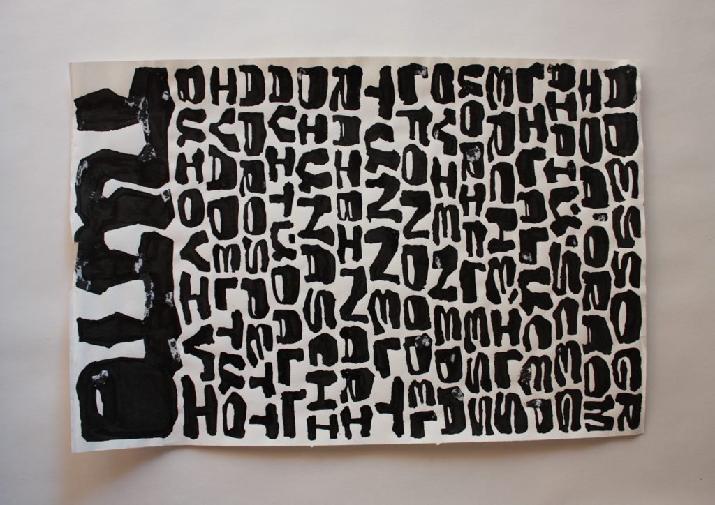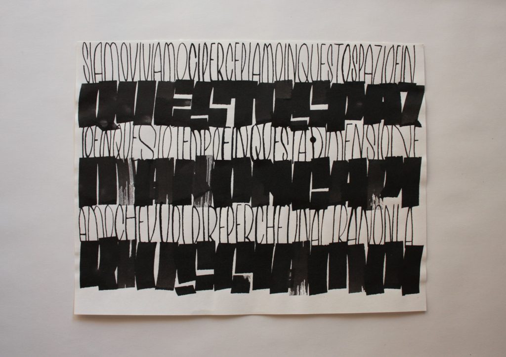 Le opere in mostra evocano il piacere che si prova nel realizzare le lettere a mano, con un gesto continuo, praticamente pittorico, come è stato insegnato ad ognuno di noi da bambini ma che oggi, a causa dell’uso frequente delle tecnologie, stiamo pian piano abbandonando in favore della digitalizzazione dei testi.