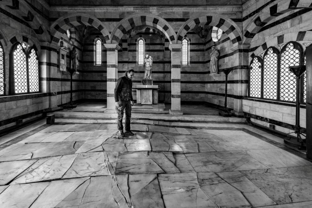 Un'opera mozzafiato, ipnotica, capace di creare l'illusione di una rottura profonda sul pavimento dell’edificio che mira a sottolineare il rapporto complesso tra uomo e natura. L'azione dell'uomo ha infatti un impatto sul patrimonio artistico e quello ambientale.