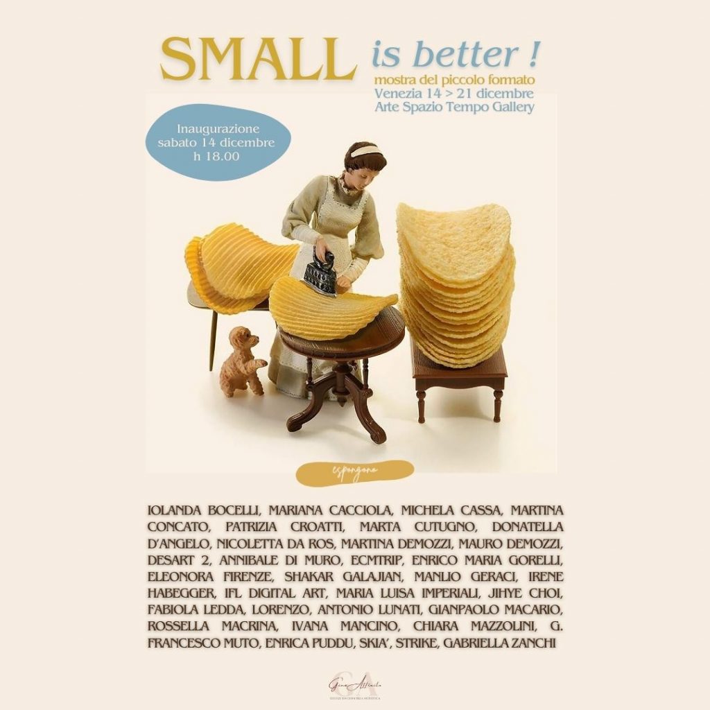 torna ai comunicati stampa SMALL IS BETTER! Arte Campo del Ghetto Nuovo 2877, Venezia, VE, 30121, Italia 14/12/2024 - 21/12/2024 Mostra del piccolo formato 30 artisti in esposizione e 60 micro-opere Scarica il comunicato