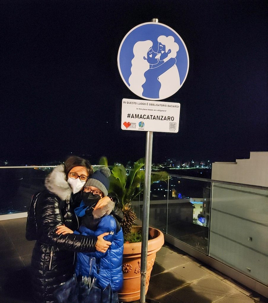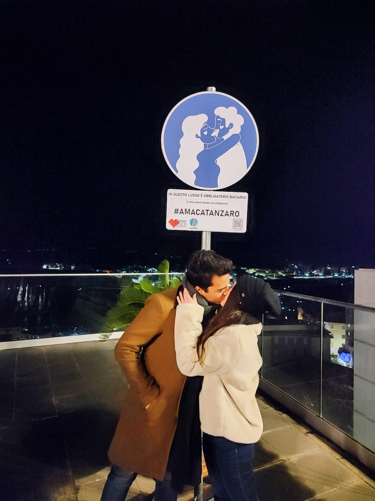 L’invito a baciare la persona amata nel punto più panoramico di Catanzaro vuole essere un invito all’amore in tutte le forme e contro qualsiasi pregiudizio. L’idea è quella di rendere il visitatore parte del magnifico paesaggio che abbiamo la fortuna di avere in dote; un bacio in questa splendida cornice deve poter esprimere anche l’amore per la propria terra.