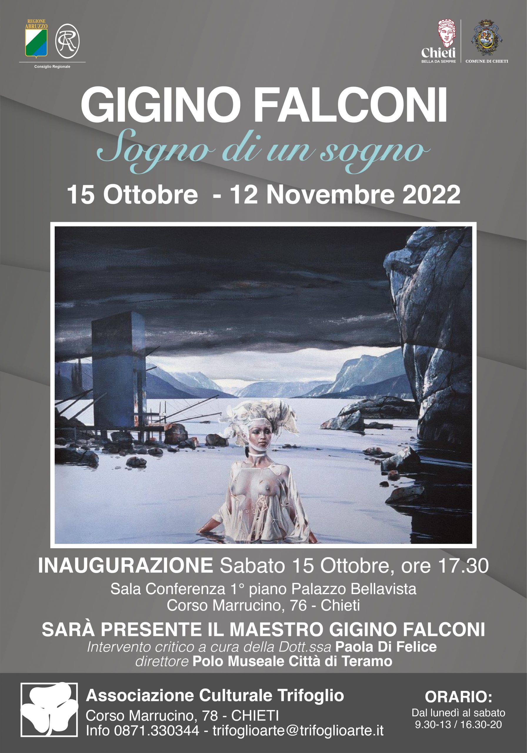 Sabato 15 ottobre alle ore 17.30 l’Associazione Culturale Trifoglio con il patrocinio della Regione Abruzzo e del Comune di Chieti inaugura la mostra personale dell’artista Gigino