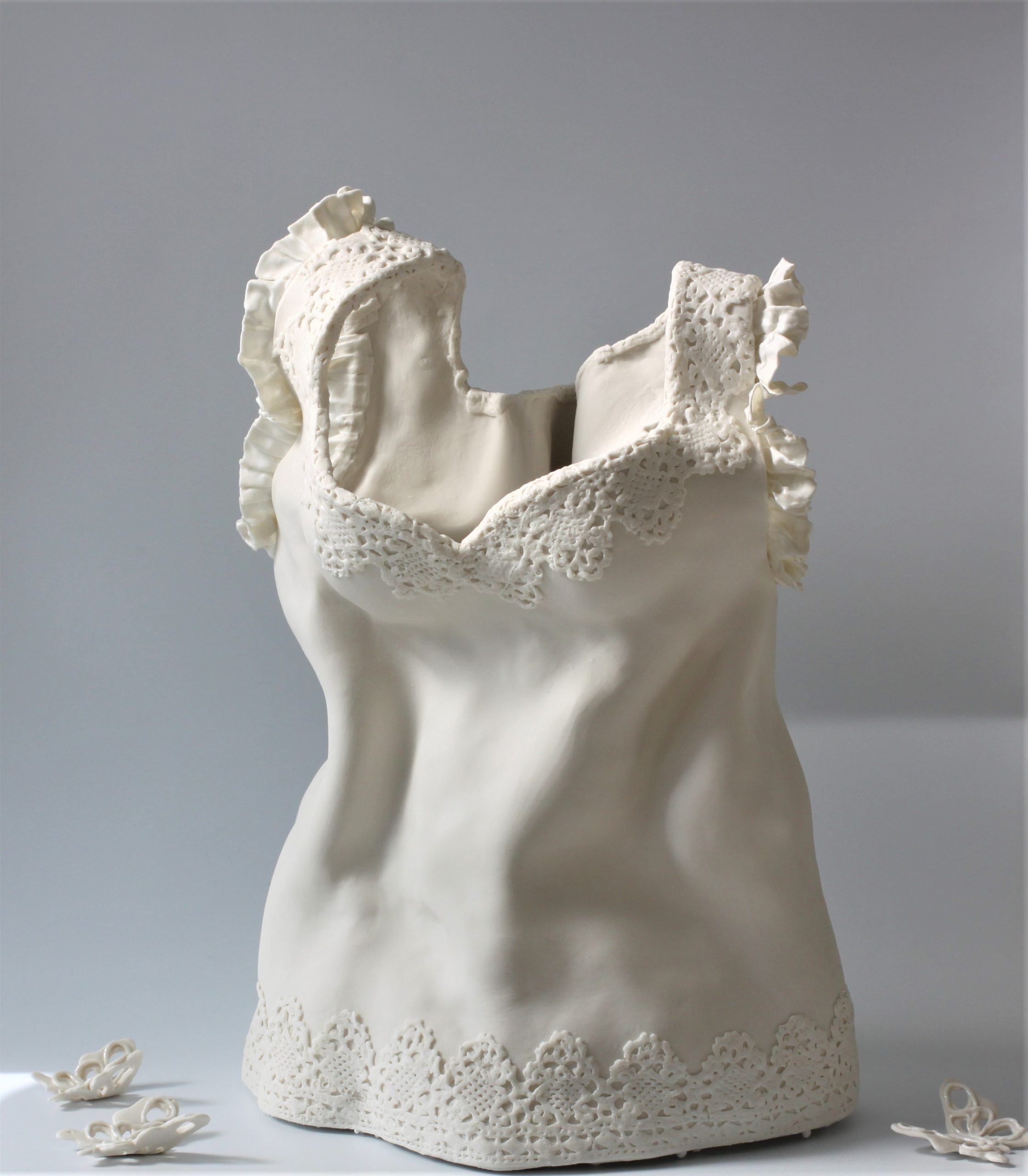 Il connubio Aida Bertozzi e Tiziana Del Vecchio è nato dal desiderio di realizzare opere scultoree che indaghino il mondo femminile attraverso indumenti e accessori.
