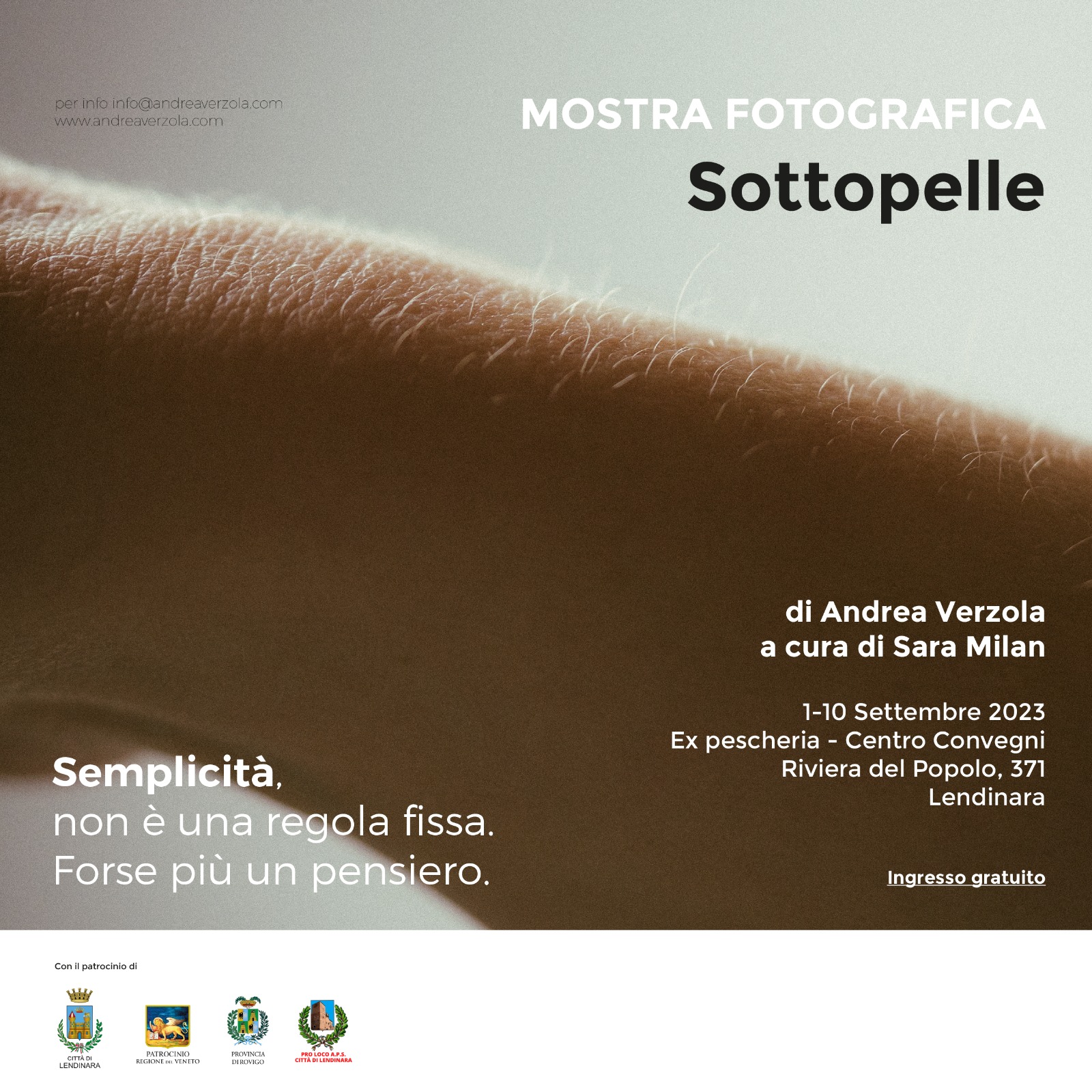 Andrea Verzola si occupa di fotografia e comunicazione visiva da più di dieci anni e in questo tempo ha collezionato molte immagini significative e rappresentative di un’esperienza lavorativa, di un viaggio, di uno stato d’animo o di una riflessione personale. La mostra “Sottopelle” sintetizza le immagini più evocative in un percorso espositivo capace di guidare il pubblico alla contemplazione della bellezza dei momenti quotidiani e alla riflessione su tematiche contemporanee, comuni ad ognuno di noi.