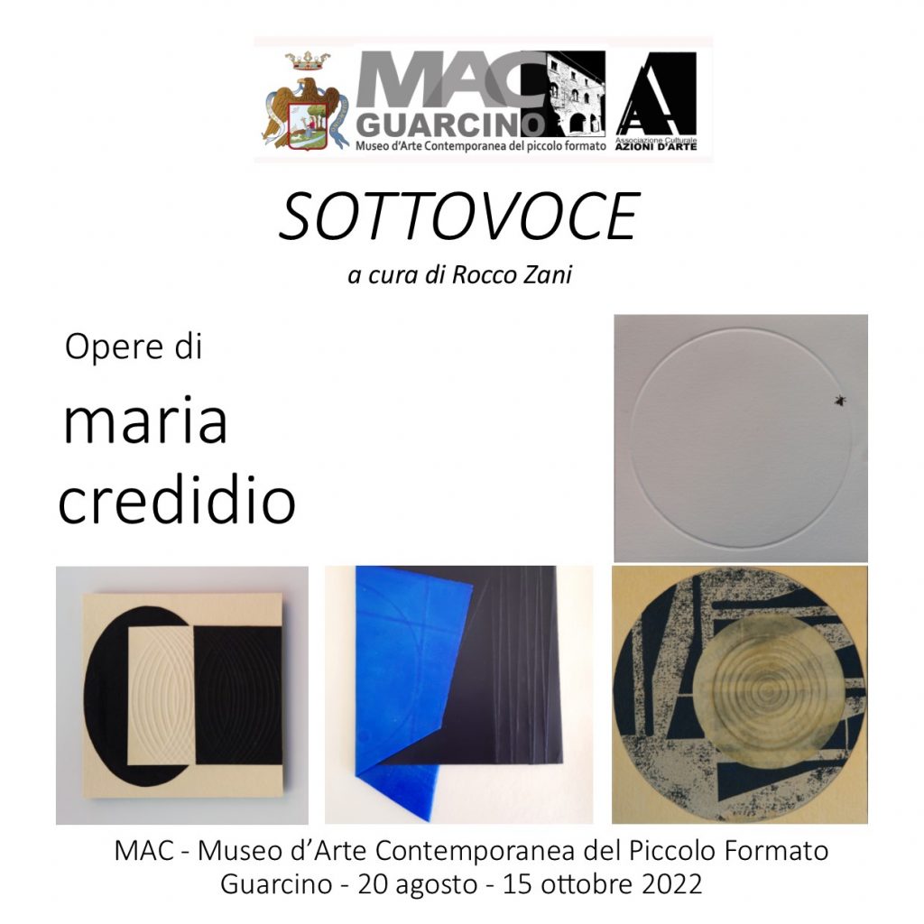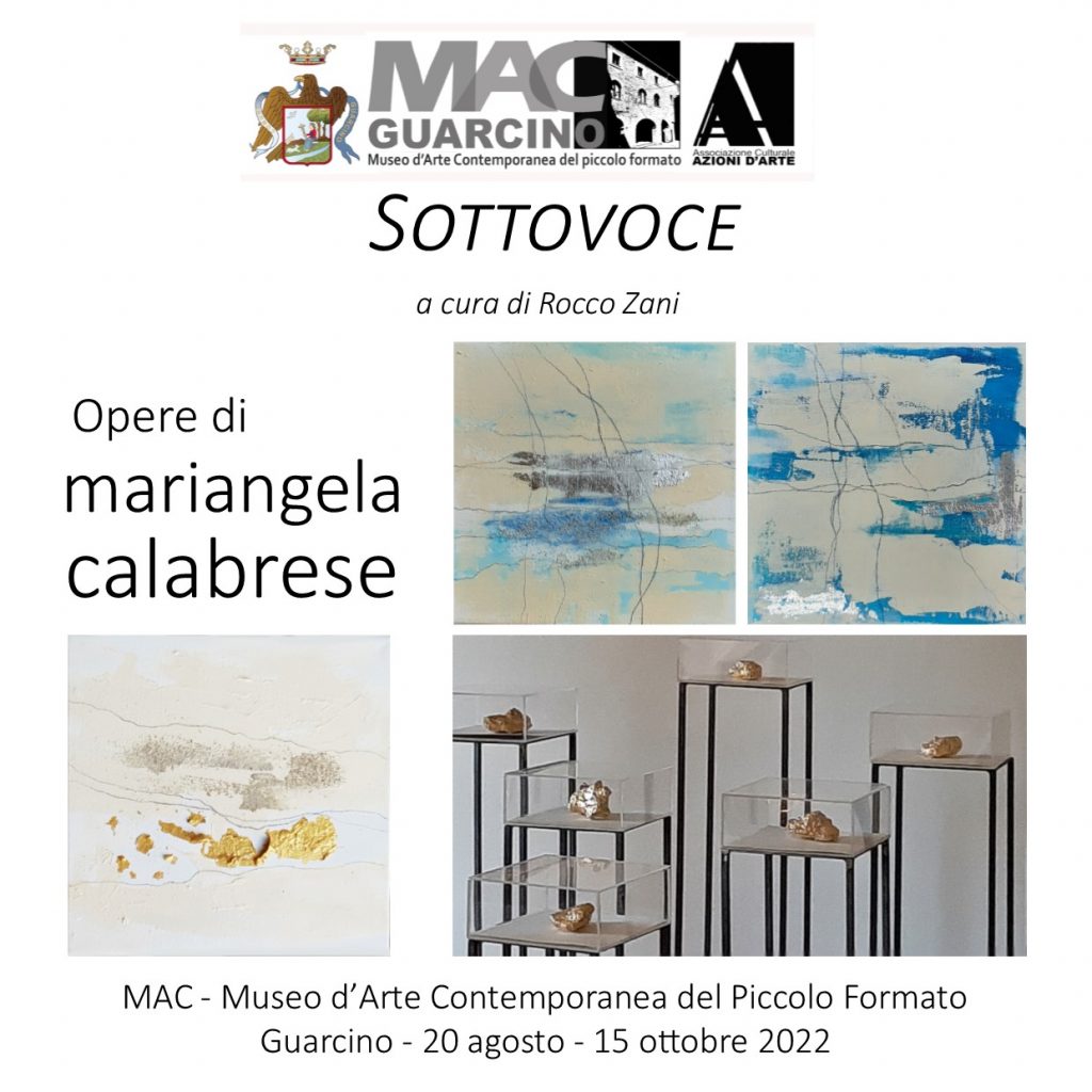Sabato 20 agosto 2022, alle ore 17,00 a Guarcino, nella Sala Polivalente del MAC. Museo d'Arte Contemporanea del Piccolo Formato, apre al pubblico la mostra di Mariangela Calabrese e Maria Credidio "Sottovoce" a cura di Rocco Zani