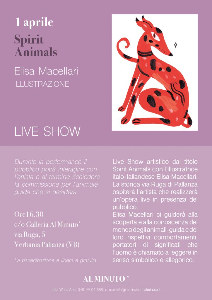 Il primo appuntamento è dedicato a un LIVE SHOW ARTISTICO dal titolo “SPIRIT ANIMALS” con l’illustratrice italo-tailandese ELISA MACELLARI rappresentata da Al Minuto’ Gallery.