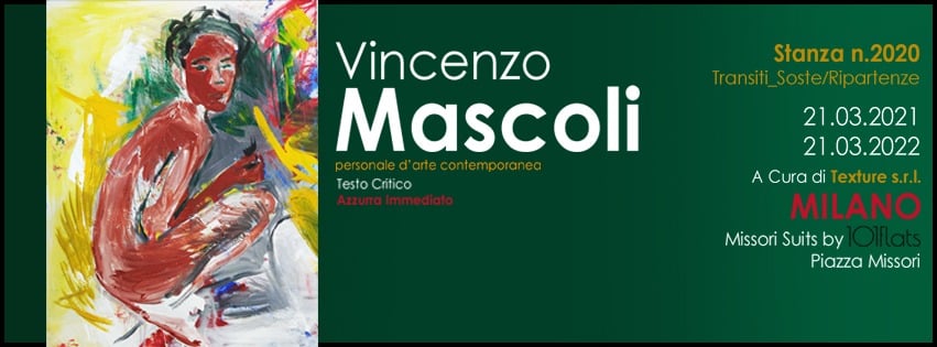 La Missori Suits by 101 Flats in Milano – prestigiosa Guest House di 17 camere, suddivisa in tre aree, Green Flats, Blue Flats e Brown Flats, al 7° piano di uno dei palazzi simbolo della dinamica Piazza Missori – da domenica 21 Marzo 2020 ospiterà, con un particolare percorso espositivo, le opere dell’artista Vincenzo Mascoli.