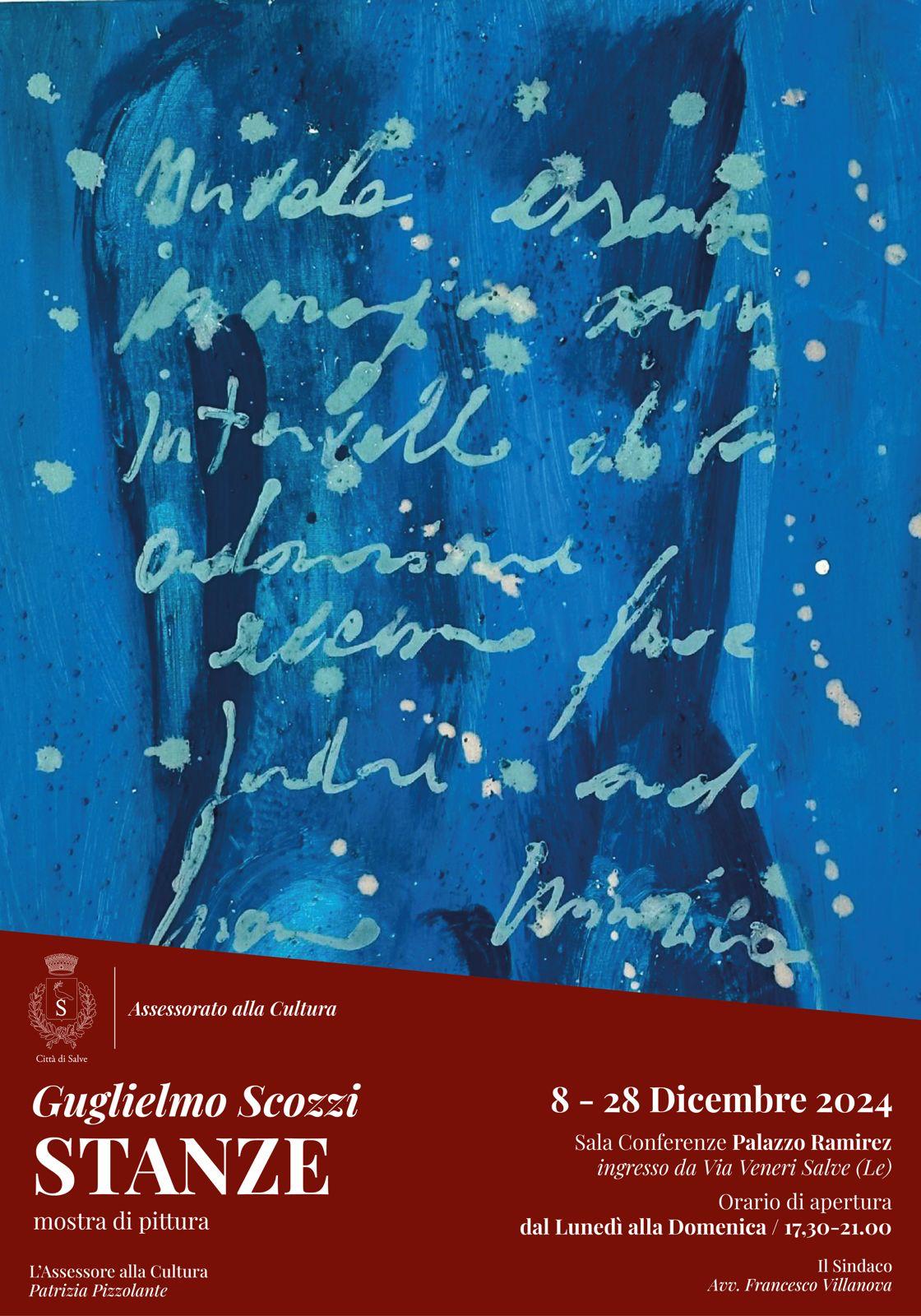 Sarà inaugurata l'8 Dicembre 2024 alle 19.30 nella Sala Conferenze di Palazzo Carida - Ramirez a Salve la personale di pittura di Guglielmo Scozzi, “Stanze”.